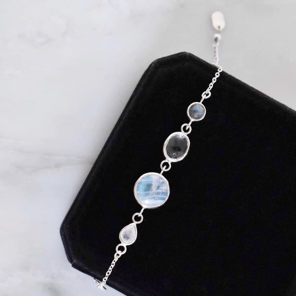 COSMIC LOVE no.1 x 4 gemstones silver chain bracelet