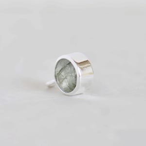 Green Rutilated Quartz round cut silver necklace