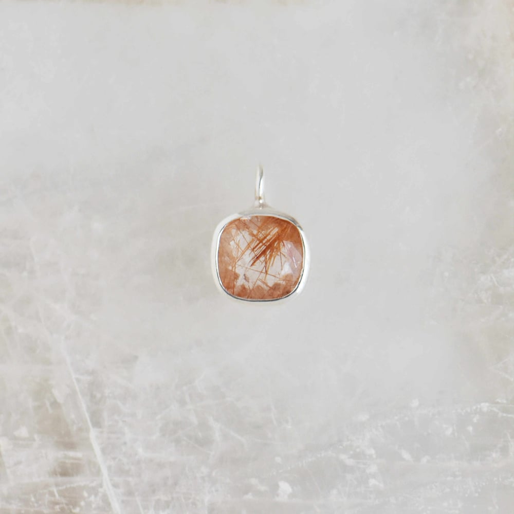 Red Rutilated Quartz cushion cut silver necklace